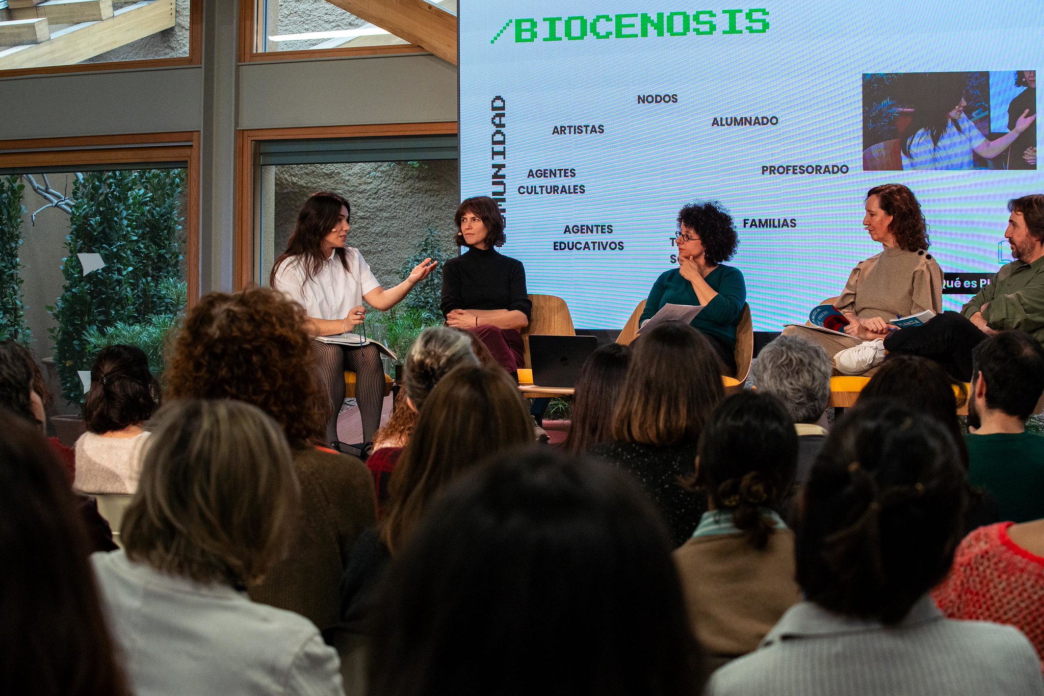Pepa Octavio de Toledo, director of the Foundation’s Citizen Art axis, Sofía Coca Gamito (ZEMOS98), Eva Morales (Invisible Pedagogies) and Pepe Campos (Consortium of Museums of the Valencian Community), participated in a conversation moderated by Pepa Ortiz. After the presentation, the meeting became a space for experimentation and collective thinking in which, through workshops, attendees were able to investigate and debate central issues for contemporary educational practice.