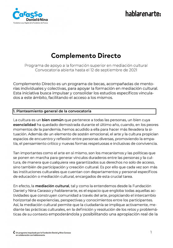 Complemento Directo. Programa de apoyo a la formación superior en mediación cultural