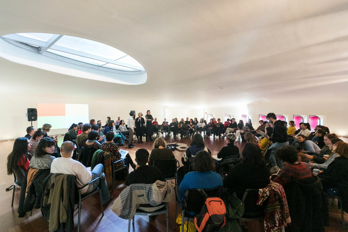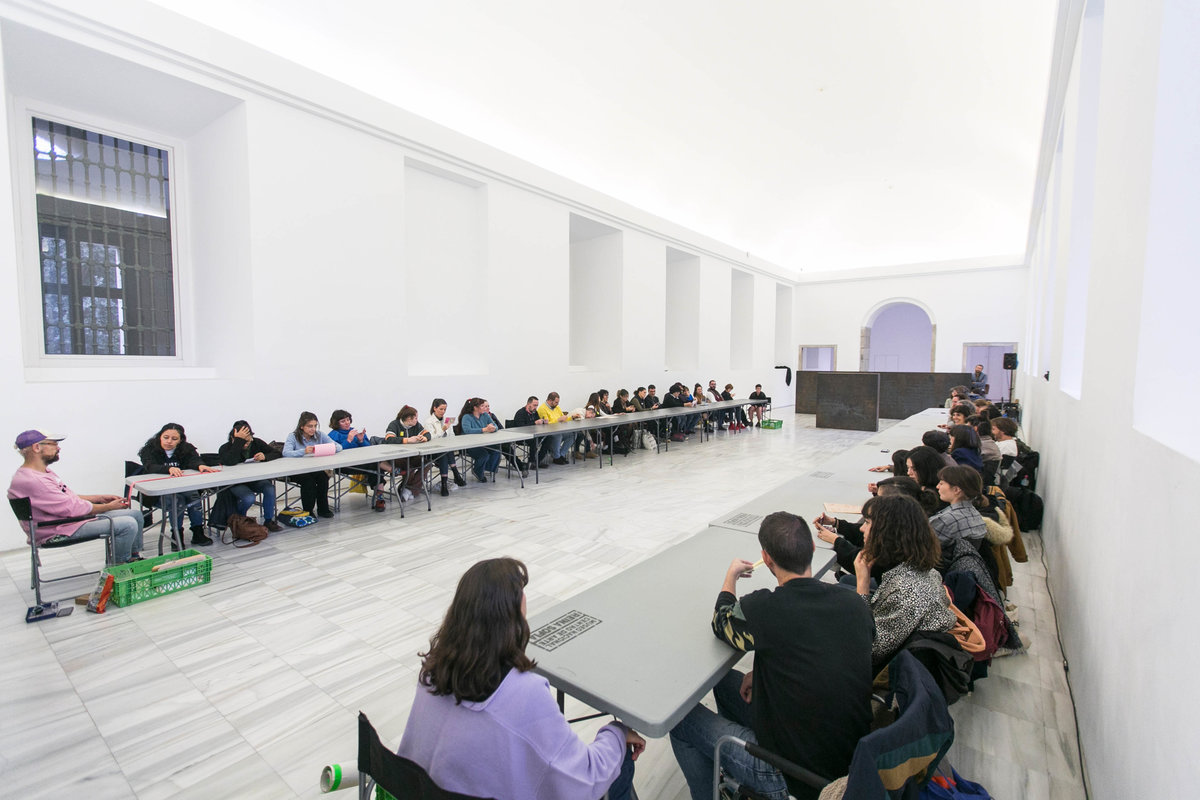 La jornada comenzó en el Salón de protocolos Nouvel con la presentación del encuentro por parte de Lucía Casani, directora general para España de la Fundación Daniel y Nina Carasso, María Acaso, jefa del área de Educación del Museo Reina Sofía, y Flavia Introzzi, responsable de la asociación hablarenarte y fundadora del programa de residencias artísticas Planta Alta, en el que compartieron los objetivos de la plataforma MAR desde su creación: promover acciones de cambio relevantes en las instituciones culturales contemporáneas que permitan llegar a una práctica artística más conectada y empoderadora con la ciudadanía.