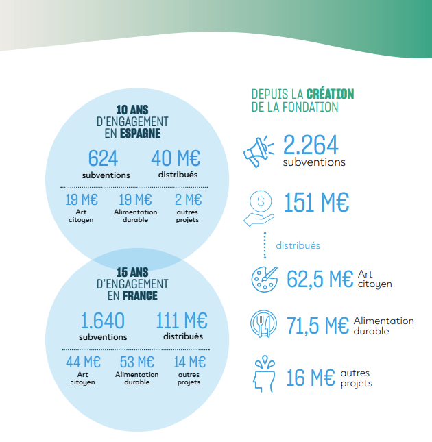 En Espagne, l’année a également été marquée par de nombreux temps forts, notamment la 2ᵉ édition des rencontres autour de l’alimentation durable dénommées «Unoconcinco«, le lancement d’un nouvel appel à projets «Arte por venir» qui propose des bourses aux artistes et collectifs, et, en décembre, la célébration de ses 10 ans d’actions.